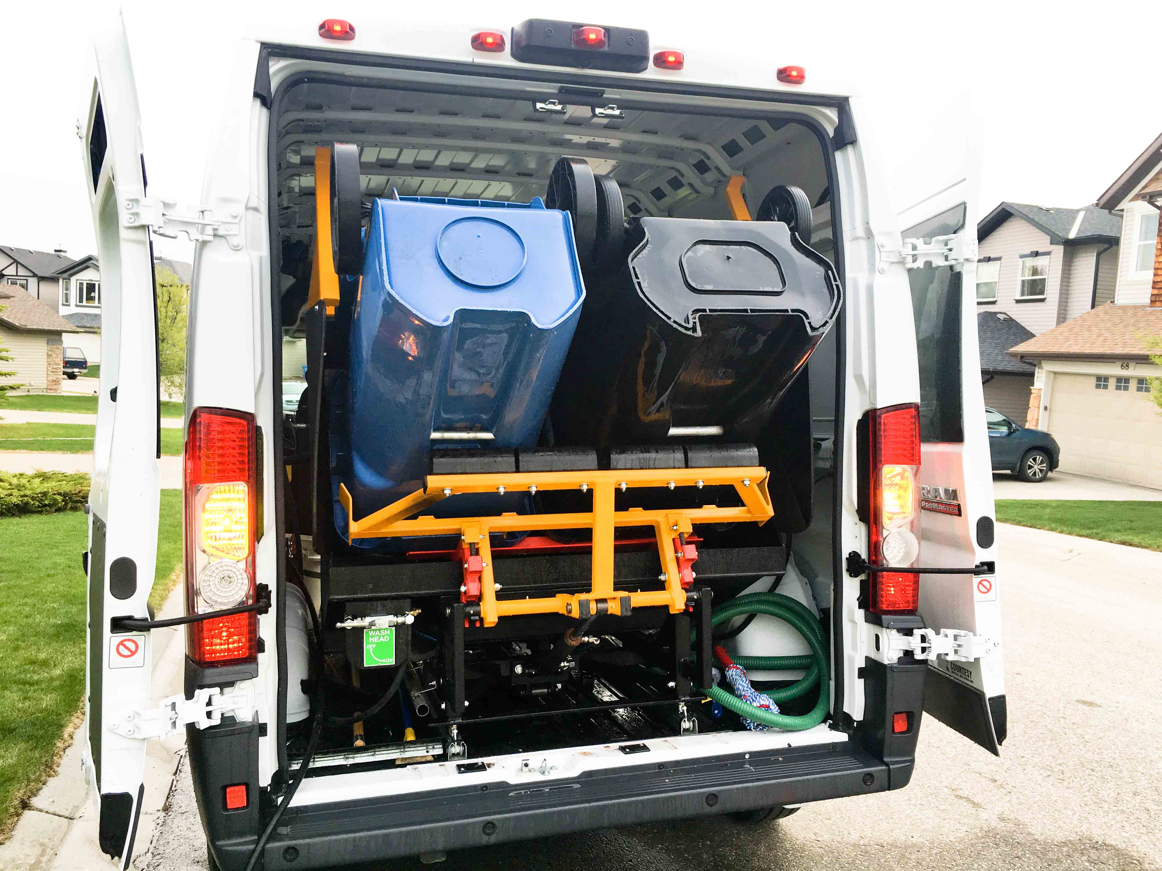 3000psi water jets, kills 99% of the germs, filtering and recycling wash-water, 100% environmentally friendly